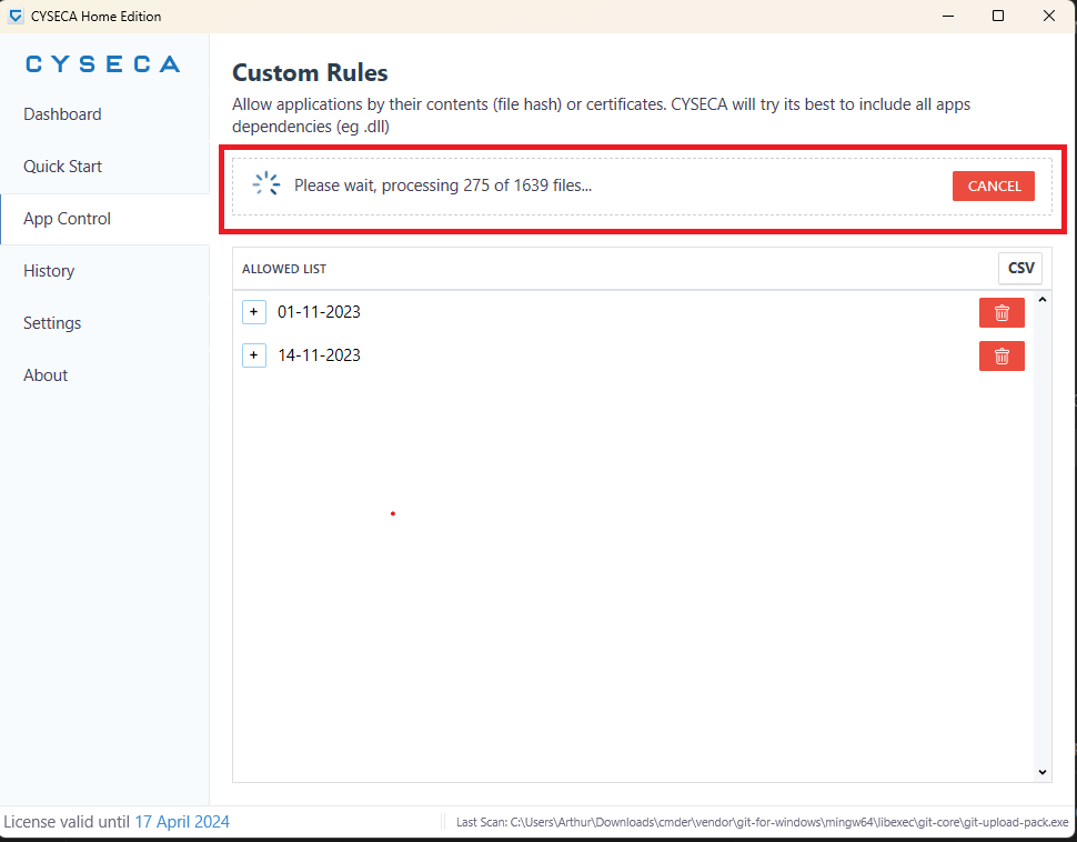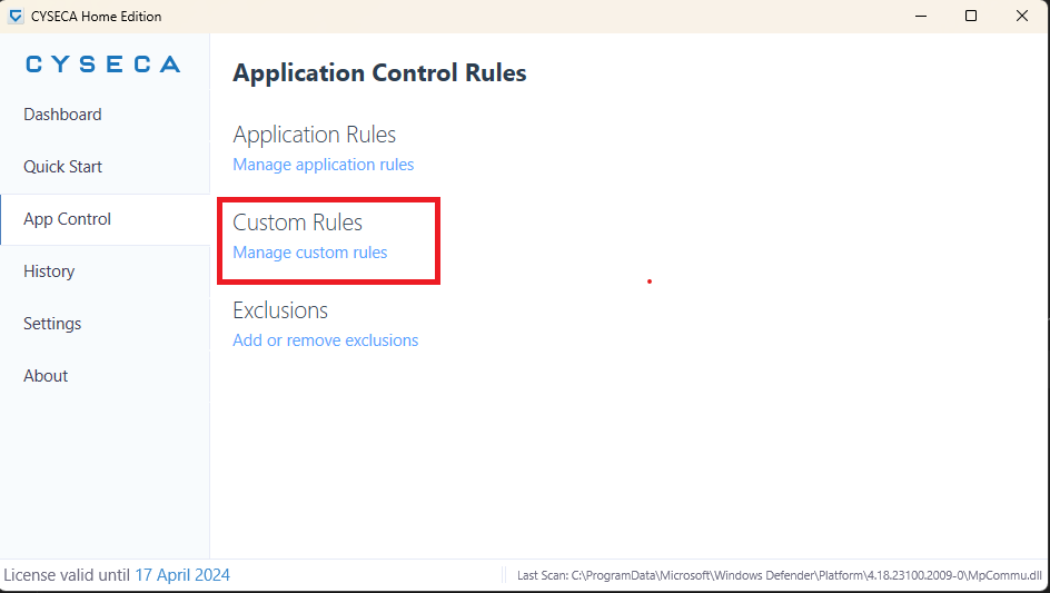 I have started using Cyseca Home Edtion, but I’m not sure how to allow Cyseca to allow an unlisted application to run? For example game application.